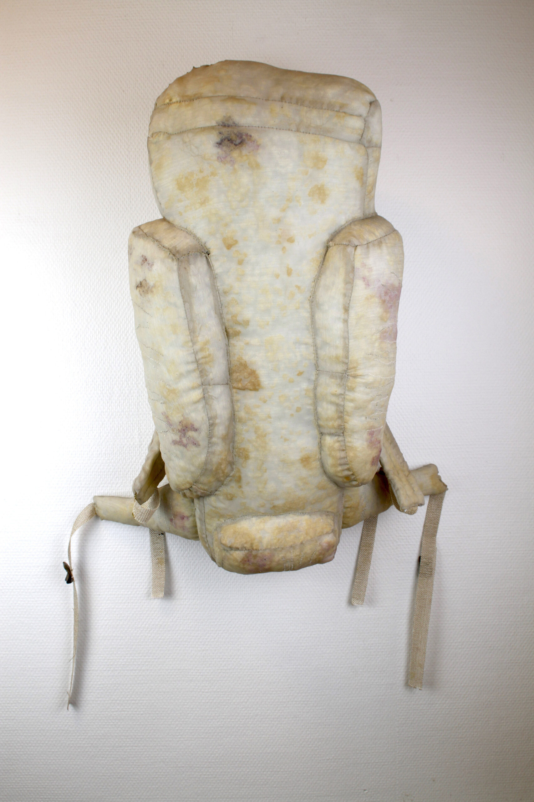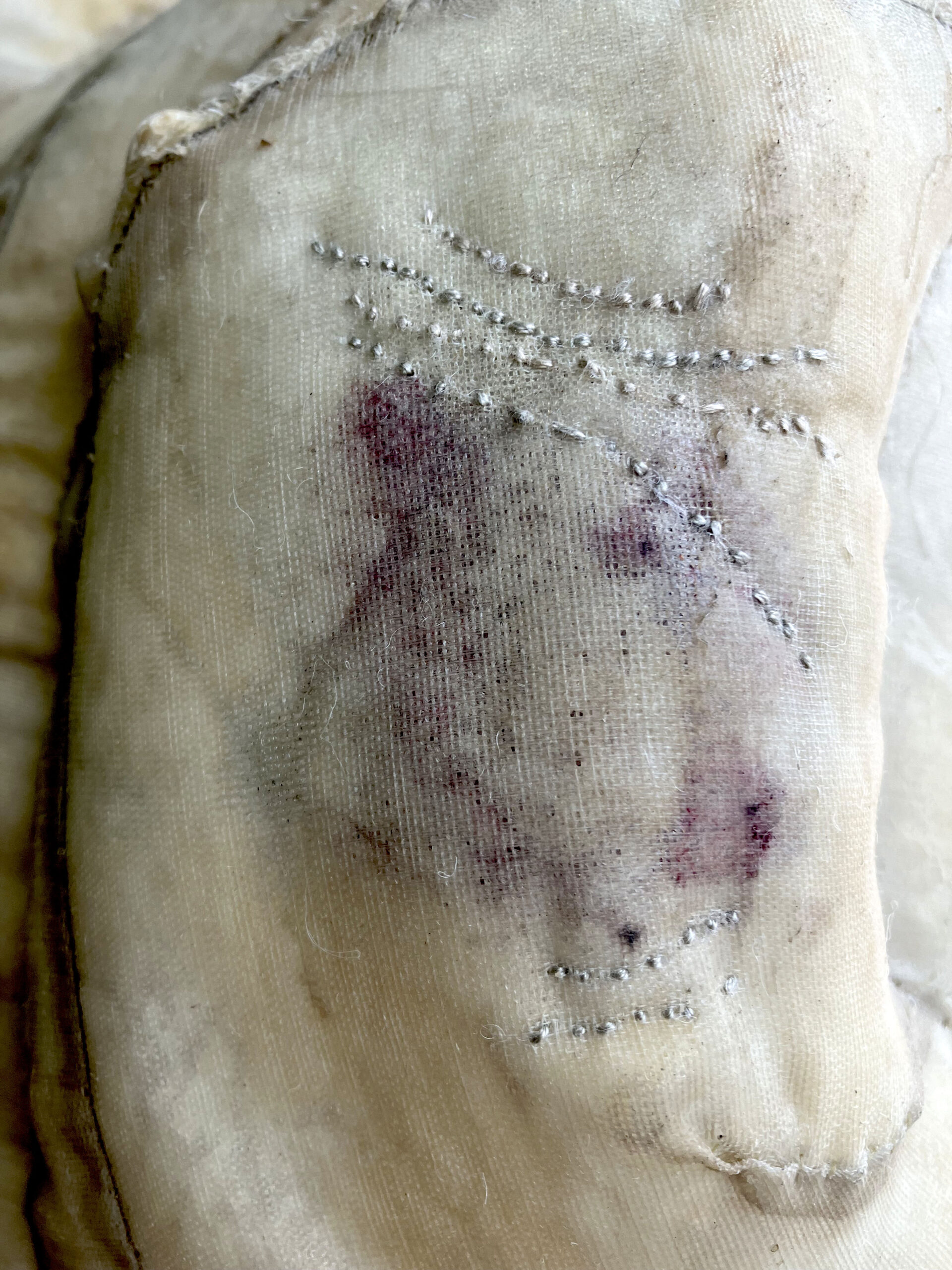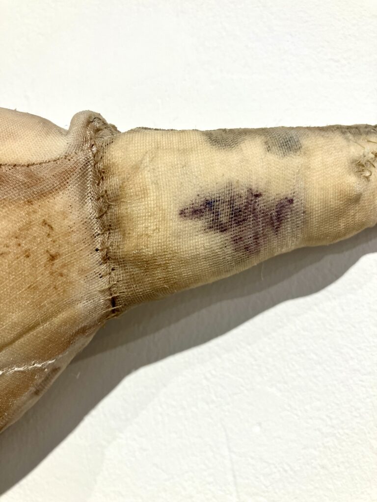 Marks and Bleeds Marks and Bleeds 2023-Textile, broderie, latex and aquarelle.Size: 65x35x20 cm. Marks and Bleeds 2024